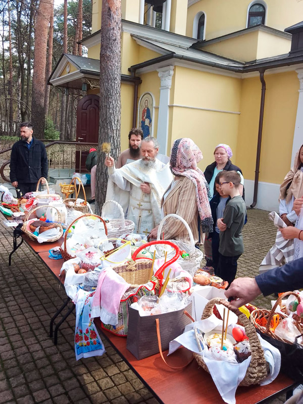 В Великую субботу, после Божественной литургии, многие прихожане собрались во дворе храма, чтобы освятить куличи и яйца.