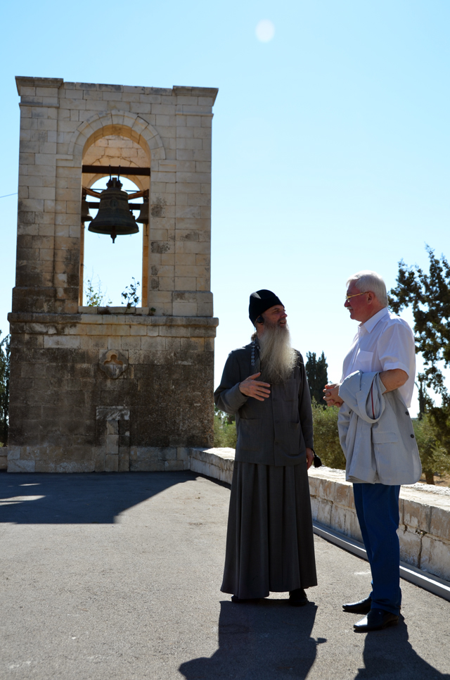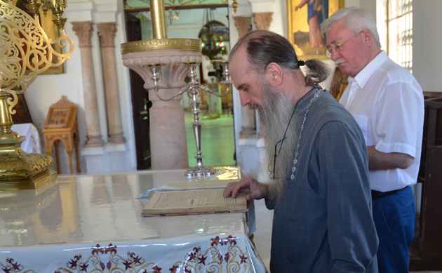 Протоиерей Иоанн у могилы отца Серафима Кузнецова, который привёз мощи преподобномученицы Великой княгини Елисаветы Феодоровны в Иерусалим в 1920 году
