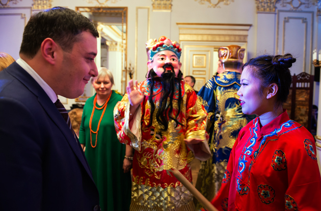 Гостям представилась возможность принять участие в карнавальном китайском ритуале проводов года страстной, неистовой Лошади и встречи года артистичной, элегантной Козы. С помощью тибетской магической чаши восточный маг приоткрыл для некоторых гостей тайны их энергетики и ответил на волнующие вопросы.