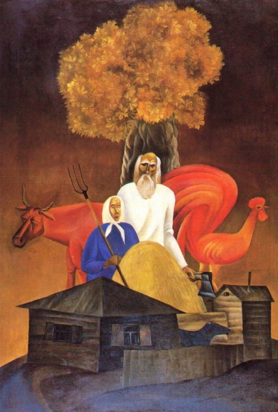 Анатолий Кулинич дарит нам своё откровение: жизнь – это отчий дом, запах хлеба, тепло очага. Воспоминание деревенского детства, впечатления о Сибири, Урале очерчивают строй образного мышления художника: нарочито примитивистские формы, угловатость и тяжеловесность фигур, условность цвета...