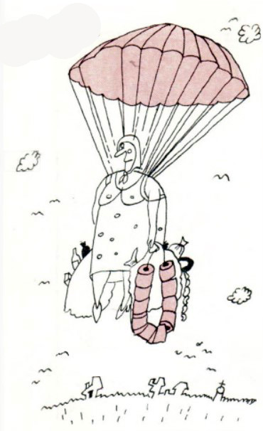 Браки, если помните, заключаются на небесах. Очевидно, там же выдаются семейные парашюты. Рисунок: А. Джикия