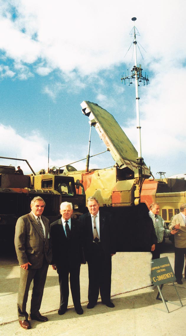На полигоне после успешных испытаний (справа налево): главный конструктор НИИ измерительных приборов Г. Голубев, руководители ОАО «ЦКБ «Алмаз» – генеральный директор Н. Н. Поляшев и председатель Совета директоров И. Р. Ашурбейли. Декабрь 1997 года