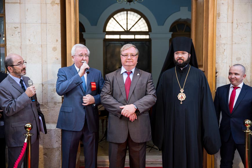 Торжественная церемония открытия проходила с участием Председателя Императорского Православного Палестинского Общества Сергея Степашина, Председателя Совета ИППО в Государстве Израиль Игоря Ашурбейли, исполняющего обязанности начальника Главного управления Международного сотрудничества Управделами Президента РФ Ивана Сердитова, министра по делам Иерусалима Зеэва Элькина и других официальных лиц. Председатель Отдела внешних церковных связей Московского Патриархата митрополит Волоколамский Антоний (Севрюк) в сослужении начальника Русской Духовной Миссии в Иерусалиме архимандрита Александра (Елисова) совершил чин освящения подворья.
