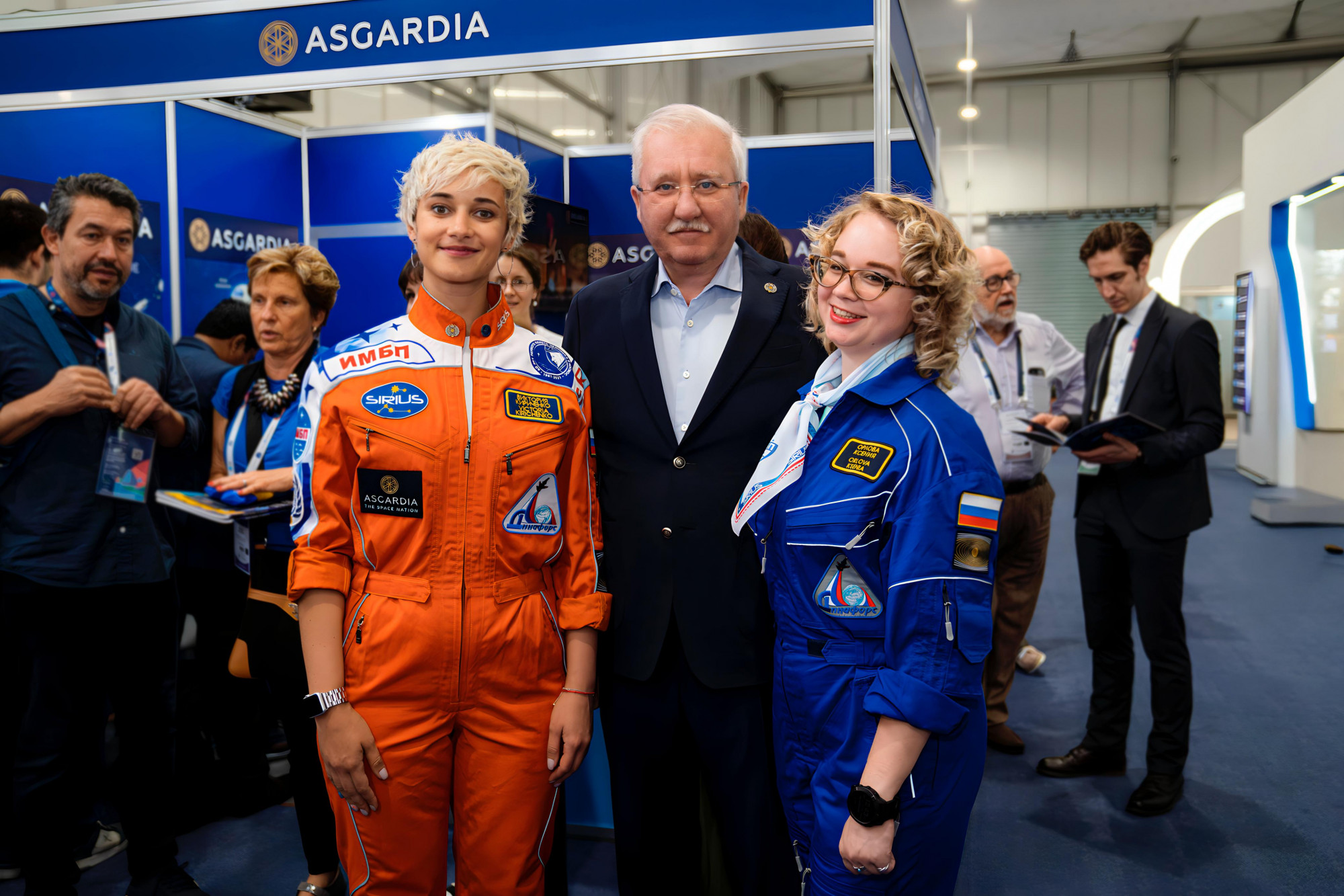 Виктория Кириченко, Глава Асгардии Игорь Ашурбейли и Ксения Орлова на 74-м Международном конгрессе астронавтики в Баку, 2-6 октября 2023 года