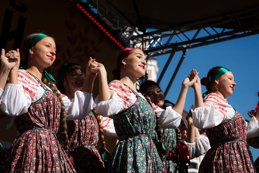 – Здравствуйте, я Юлия, – добавляет ещё одна участница. – Фестиваль, а точнее праздник фольклора и ремёсел «Голос традиций», – это не просто праздник, это праздник русской культуры, русской традиции. То, что заложено у нас у всех в глубине души, и то, что заставляет её распахнуться, пуститься в пляс, иногда и прослезиться, потому что это всё наше, всё родное.
