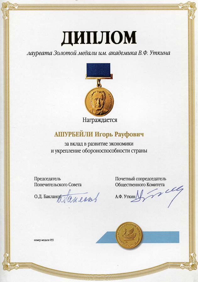 Игорь Ашурбейли получил медаль имени академика В. Ф. Уткина