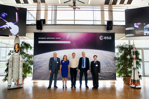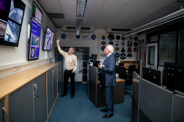 Экскурсию для высоких гостей провёл лично глава Европейского центра астронавтов Франк Де Винне – известный астронавт Европейского космического агентства, первый европейский командир МКС. В холле Центра, где все стены увешаны эмблемами полётов, два знака имеют непосредственное отношение к Франку – он был участником миссий «Одиссея» (2002 год) и «Оазис» (2009 год).
