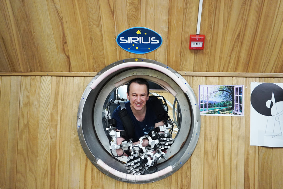 В период подготовки к изоляции один раз мне всё-таки тоже довелось протестировать на себе эту систему, тогда мы работали со знаменитым роботом «Фёдор». Это был интересный и запоминающийся опыт. Трудно соединить в восприятии свои физические руки и виртуальные: в виртуальном пространстве выполняемое тобой действие отображается на другом расстоянии. Нужно ещё приспособиться к этому ракурсу. Но всё равно эта выдающаяся технология поражает воображение, особенно когда осознаёшь, насколько она облегчит жизнь человека в космосе и непосредственно внекорабельную деятельность.