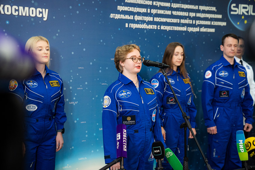 После небольшой пресс-конференции и фотосессии добровольцы из экипажа SIRIUS-23 попрощались с журналистами на год. Под аплодисменты и возгласы с пожеланиями удачи от участников брифинга, родных и друзей, наблюдавших за стартом эксперимента с верхнего яруса НЭКа, они зашли в гермоблок. Вслед за этим люк наземного «межпланетного корабля» был опечатан снаружи ровно на 365 суток.