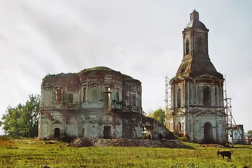 Замысловатая архитектура храма и масштабные объёмы его нефа напоминают о размахе, с которым жил помещик Алексей Путятин, построивший здесь каменную церковь на месте деревянной в середине XVIII столетия. По одной из версий, он заказал проект самому придворному архитектору – Василию Баженову.