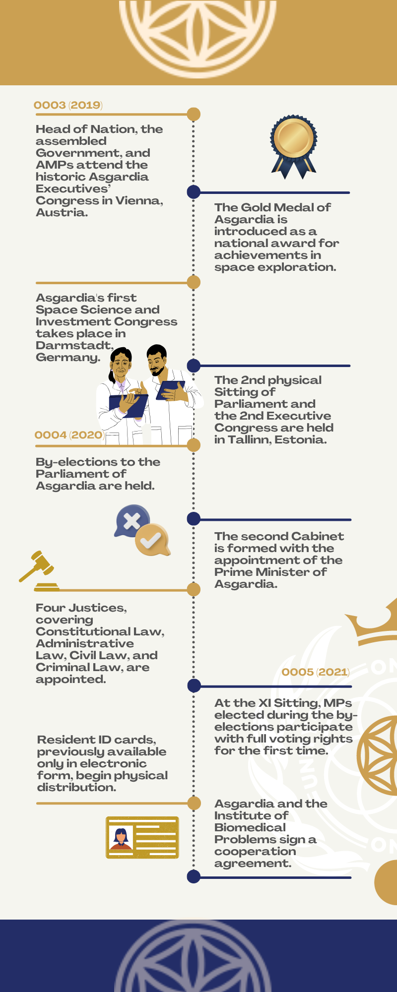 От концепции, имеющей большой потенциал, до состоявшегося цифрового государства, объединяющего более 1,1 миллиона человек, – Асгардия в наши дни представляет собой уникальную модель транснационального общества и управления космического века. У Асгардии есть своя Конституция, национальные символы, цифровая валюта и три ветви власти. Через несколько недель Асгардия впервые заявит о своих правах на физическую территорию на Земле – историческое заявление будет сделано по итогам IV Конгресса руководящего состава Асгардии.