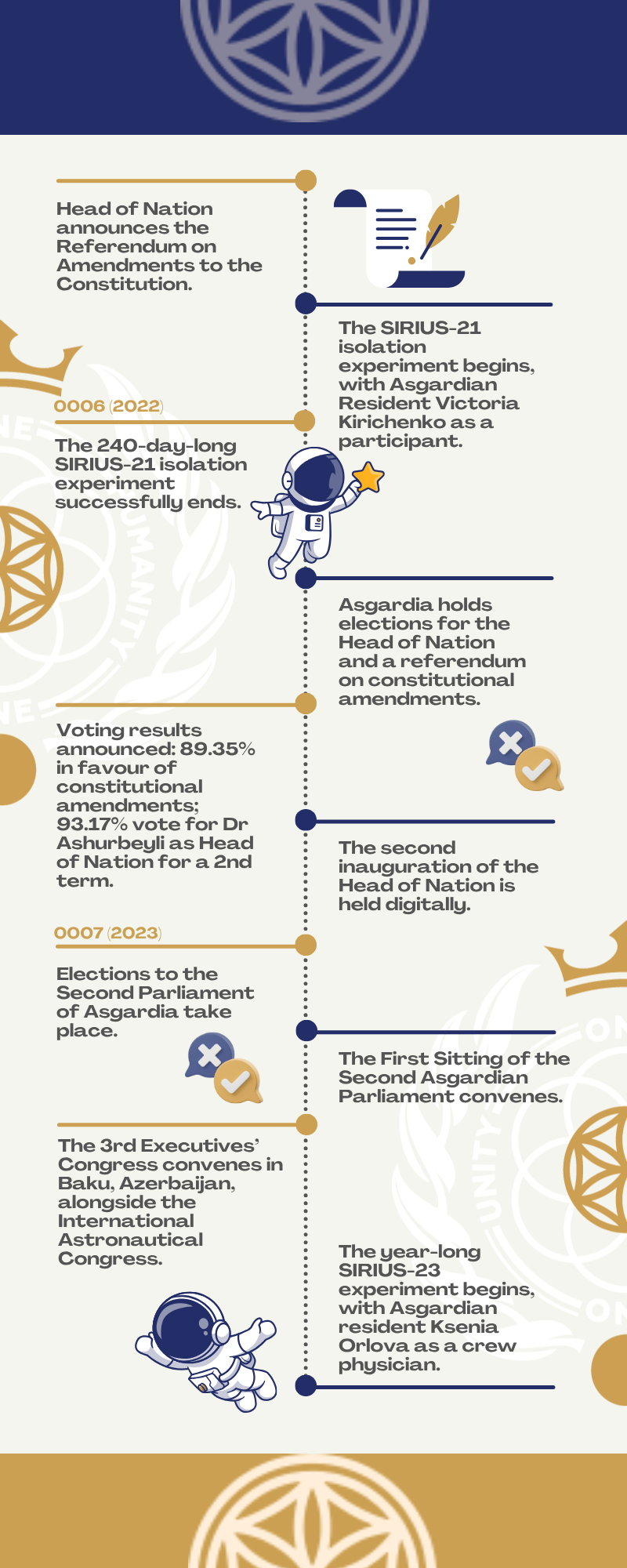 Объявлены результаты цифрового голосования: 89,35% асгардианцев проголосовали за поправки к Конституции; 93,17% асгардианцев проголосовали за Игоря Ашурбейли в качестве Главы Нации на второй срок.