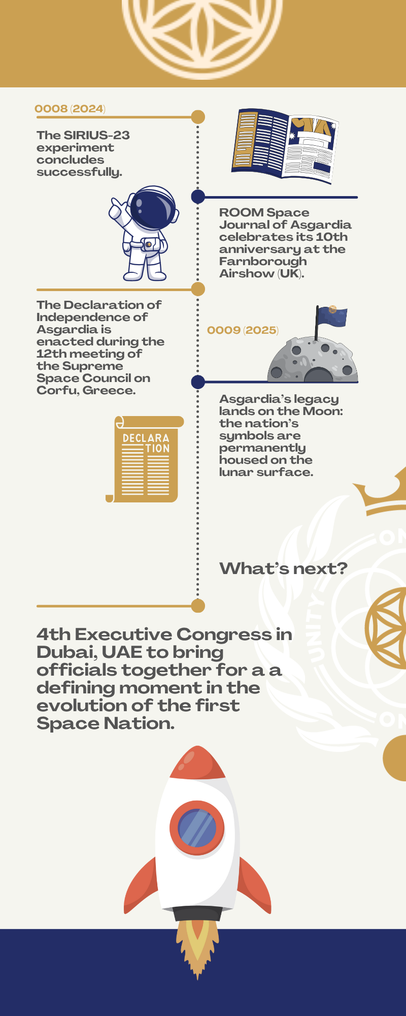 Сегодня, 06 Ophiuchus 0009 (12 октября 2025 года), асгардианцы по всему миру отмечают День основания Асгардии – день, посвящённый единению и прогрессу. Девять лет назад Асгардия была всего лишь концепцией. Сегодня это цифровая Космическая Нация. Завтра она станет цивилизацией среди звёзд.