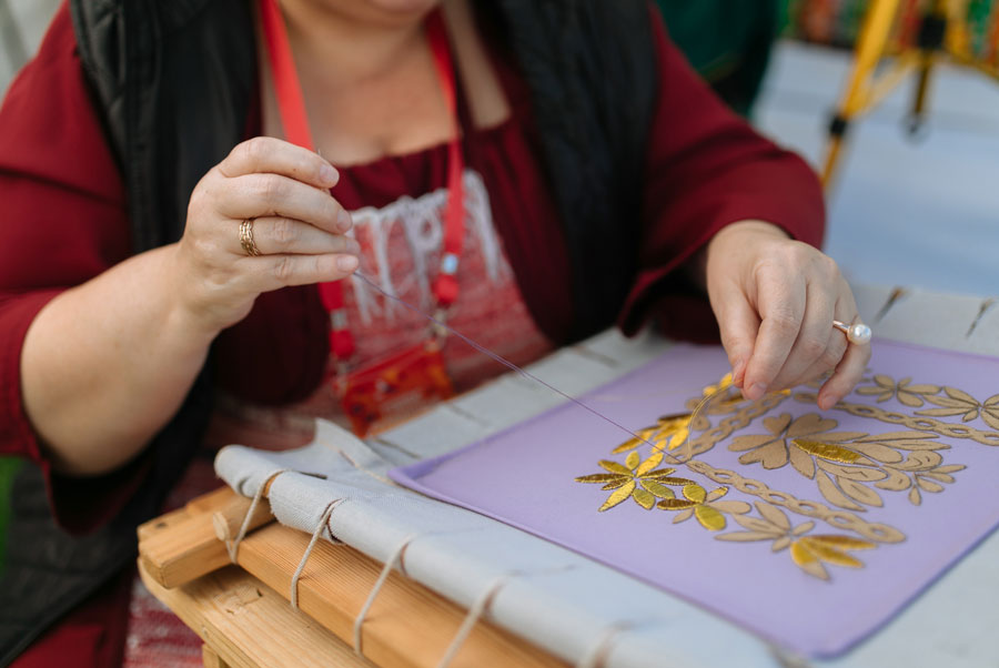 «Арзамасский центр ремёсел», традиционный участник хиринского фестиваля с 2018 года, обладатель Гран-при в 2018 и 2024 годах, представил золотную вышивку.