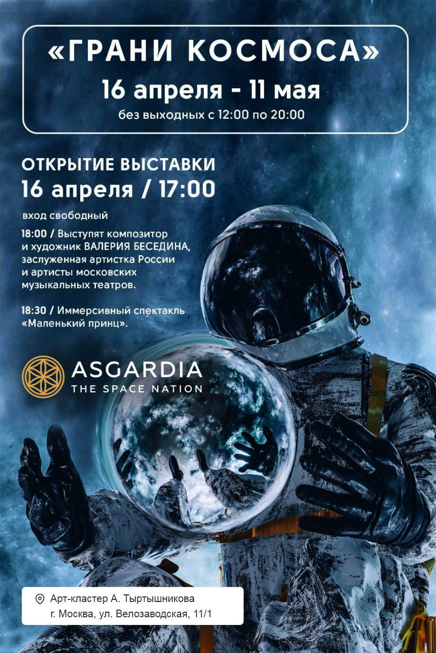 Выставка «ГРАНИ КОСМОСА» продлится до 11 мая 2025 года. В программе – встречи с космонавтами, лекции и специальные мероприятия, которые позволят посетителям по-новому взглянуть на взаимосвязь искусства и космических технологий.